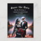 Gothic Skeleton Couple Navy Save the Date Announcement Postcard