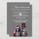 Imagine the scene: beneath the delicate, customisable text templates of your names and the details of your ceremony, lies an extraordinary vision. Behold the dashing skeletal couple, eternally intertwined in their unbreakable bond. The bride and groom, crafted with exquisite artistry, stand as eternal symbols of love that transcends the mortal coil.
