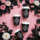 Delicate, gothic watercolor florals meet adorable paper cups perfect for a gothic Halloween-themed baby shower party. Our sweet, handcrafted designs will add a touch of whimsy and elegance to your baby shower celebration. Elevate your event with these unique paper cups that are sure to impress your guests! Our design features our hand-painted watercolor gothic florals and skeleton hands creating a heart shape with pink baby girl footprints. Design captures the essence of a cute mystical and charming gothic theme. Original hand-drawn watercolor artwork and design by Moodthology Papery.