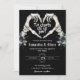 Gothic Skeleton Heart Till Death Do Black Wedding Invitation. Modern minimalist floral gothic and Halloween wedding invitation featuring heart shaped skeleton heart, calligraphy script and black background. You can personalise the wording, font style, colour and size in front and back of the invitation. Please fell free to contact me for matching items.