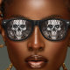 Cool detailed black and white skeleton skull art in gothic style retro sunglasses. Great Halloween costume accessory for anyone. Unisex design for men and women, adults and kids.
