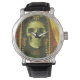 This watch is illustrated with decorative gothic skeleton witch. By surrealist artist Michael Thomas.