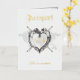 Choose this elegant Passport style Wedding Invitation for your wedding, designed in an elegant Gothic style. The hand-drawn illustration on the front page features a skeleton couple surrounding a heart, featuring the couple's monograms. The next page shows the full invitation with all the needed details, followed by a Passport-style page with more information. On the last page, you can add a handwritten signature (upload a photo, please), or fill your name in the text box.