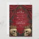 Step into a night of dark elegance with this gothic red curtain Halloween soirée design. Featuring dramatic velvet drapes, black roses, and gold-adorned skulls, it sets the perfect tone for a hauntingly glamourous celebration. Personalise with your details and host an unforgettable evening of mystery and macabre.