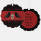 This awesome Halloween ornament card makes a lovely decoration that can be hung up like an ornament or sent in an envelope like a conventional card. The design features a graphic image of a skull with red eyes and yellow teeth covered in cracks. The creepy skull has a large raven standing either side of it like a guardian. The ravens are black with grey legs and claws. They also have beady black eyes. There is custom text on the back so you can fully personalise this ornament card meaning it is also suitable for use as a present tag.