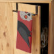 This awesome kitchen towel features a graphic image of a skull with red eyes and yellow teeth covered in cracks. The creepy skull has a large raven standing either side of it like a guardian. The ravens are black with grey legs and claws. They also have beady black eyes.