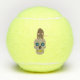 This awesome set of tennis balls features a creepy grey skull with glowing blue eyes and rotting yellow teeth. On top of the skull is a brown rat with pink ears, tail, paws and nose and blue eyes, The rat has an arched back ready to leap out at you. A great design for rat lovers and for Halloween.