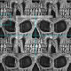 Gothic grunge black and white skull head close up sewing material design. Spooky, creepy, evil, sinister, macabre fabric. Cool, trendy, unique, modern, scary Halloween pattern. Image copyright Marg Seregelyi Photography.
