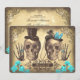 Gothic old vintage wedding invitations with Victorian style skull couple. Perfect turquoise - aqua blue flowers invite for Day of the Dead wedding theme. Please contact me if you need help with customisation or have a custom colour request.
