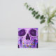 Skull head face close up Gothic grunge cool purple blue texture design. Unique creative tattoo artist professional square business cards. Trendy, modern, scary vintage inspired. Name and profession in purple custom script. Image copyright Marg Seregelyi Photography.