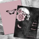 Beautifully dark and moody this bridal shower invite is perfect for those who love gothic and Halloween. Skull with roses and butterflies on top of a black watercolor background set the vibe. Distressed script typography adds to the look. See coordinating items in our shop, Enchanted Finch.