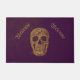 Skull head Gothic grunge texture welcome doormat. Modern vintage, decorative, trendy, purple, gold, creepy, cool. Image copyright Marg Seregelyi Photography.