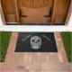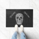 Skull head Gothic black and white grunge creative texture design welcome mat. Custom printed. Unique, cool, trendy, modern, scary vintage style home decor. Image copyright Marg Seregelyi Photography.