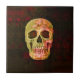 Gothic skull head vintage retro red, green ceramic tile. Scary, spooky home decor design. Cool, trendy, modern one-of-a-kind. Image copyright Marg Seregelyi Photography.