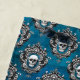 On this unique and fun beach towel, a skull image is framed with an ornate gothic style design and placed in a pattern that covers the surface. The pattern is placed on a gradient royal blue background. Be sure to see the matching products in our store.