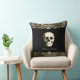 Stylish Gothic Glam Monogrammed accent pillow for your Halloween decor. Design features a white skull with golden ornaments on a black background. Personalise with your name or custom text. The background colour is customisable, so you can match the design to your interior decor .