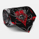 Red and black patterns with roses, hearts, skulls and little hints of grey metal on them.
