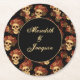 These gothic wedding coasters feature a pattern of creepy skulls floating in a black abyss behind your monogram text. Each skull is adorned with red roses for your romantic occasion on Halloween. Their empty soulless eyes are contrasted sharply against the goth rose crown and bouquets of dead flowers.