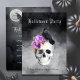 Add a unique personalised touch to your Halloween Party invitation. This Halloween invitation features a spooky white skull surrounded by grey mist .The skull is accented with a beautiful purple roses and a black raven standing on the top of the skull . Perfect for your Halloween Party or Gothic themed events. The back of the invitation has all the details of the party that you can easily customise. It features a full moon night scene and creepy flying bat.