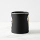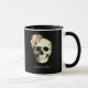 Gothic Floral Skull personalised coffee mug. Design features skull accented with beautiful white roses on a black background for a gothic look that is both elegant and edgy. Personalise this mug with your name to make it truly one-of-a-kind. Perfect gift for those who love gothic style and dark elegance.