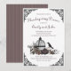This Gothic Thanksgiving Skulls, Pumpkin & Fall Leaves Invitation Invitation features a hand-drawn illustration of a Victorian birdcage with roses, pumpkins, skulls, raven, and foliage in a moody palette of plums and creams, all against an elegant white background. Personalise with your event details and RSVP information. The back features an elegant plum and taupe pinstriped pattern.