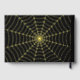 Gothic Halloween Spider Web Monogram Gold Foil Black Wedding Guest Book. Add a touch of dark elegance to your Wedding. This guest book features a geometric spider web design with luxurious gold foil accents. The customisable monogram at the centre adds a personalised touch, making it a unique keepsake for weddings. This Day-of Stationery is sure to impress your guests and provide a lasting memento of your celebration of eternal love.