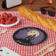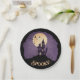 A dramatic Halloween plate design featuring a haunted house silhouette against a glowing full moon and a purple night sky. Flying bats and eerie trees add the perfect spooky touch, while the bold “Spooky!” script makes it party-ready. Ideal for Halloween gatherings, gothic-themed parties, or haunted house events, these plates bring a stylishly spooky vibe to your table.