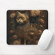 Gold steampunk gothic cat, flowers and gears digital AI artwork.