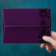 Black damask on dark purple background with a funny whimsical Gothic Steampunk skull, and spider design, perfect for Alternative steampunk, Gothic wedding or party invitations. Visit the LEATHER_AND_LACE STORE for matching products and gifts from the dark side.