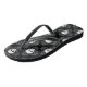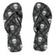 Cute women's goth flip flops with a pretty skull pattern on the foot bed. Black and grey damask with white skulls with black straps. Cute Gothic summer fashion. Or wear at Halloween if it is hot where you are at that time of the year. I think these would look cute with black polished toe nails and an ankle bracelet. Great for Halloween too in warmer climates.