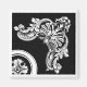 Features a gothic header trim piece with curly leaf scroll. Done in black and white