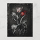 An old botanical illustration of variegated tulips has been recolored into a darker, more gothic theme of red and black.