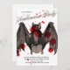 A vintage bat illustration and red blood splatters give this Halloween party invitation a creepy cool Victorian vibe making it the perfect choice for an adult monster mash or vampire themed party.