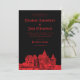 Impress your guests with this gothic wedding invitation by JessicaAmber. This card features a haunting red vintage illustration of a castle, which you can replace with an image of the destination where you'll be married (transparent background preferred). A calligraphic blackletter fontface displays the bride and groom names. Add the details of your wedding, including the location, date and time.The colour scheme is blood red on black. This invitation is preferred for when the couple are hosting the event themselves.