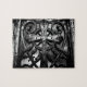 An old wrought iron cross in heart from a door on a crypt in black and white on a puzzle.