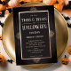 Customisable Halloween party invitation in a moody dark Victorian gothic theme, in black, dark grey and gold tones.