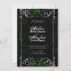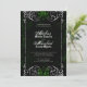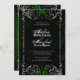 These gothic victorian black and white and green wedding invitations are perfect for Halloween weddings, with an ornate, old-fashioned swirly frame, cracked with age, covered in spooky cobwebs, against a lightly textured, moody black and green background. The text is a combination of grunge script, classic easy to read block lettering, and Old English, mediaeval style type. Customise the back with your own reception and RSVP info to save the need for enclosure cards, or delete those fields to leave the back blank.