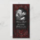 These gothic victorian red, black and white save the date photocards are perfect for Halloween weddings, with an ornate, old-fashioned swirly frame, cracked with age, covered in spooky cobwebs, against a lightly textured, moody black background with crackling lightning. The text is a combination of grunge script, classic easy to read block lettering, and Old English, mediaeval style type. Easily customise with your own engagement photo and text!