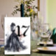 Gothic watercolor floral black wedding table number