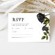Gothic wedding RSVP card featuring illustration of black roses on a white background. Perfect for a halloween wedding.