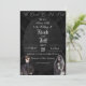 A dark wedding invitation that feature black chalkboard and goth fonts for your unique wedding. You can personalise the invitation with your own information.