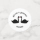 This awesome Wedding confetti features a digital art image of a pair of beautiful black swans facing each other and looking like they are kissing. They are black with red eyes and beaks. There is custom text so you can include the names of the happy couple and the Wedding date.
