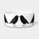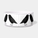 This awesome patterned pet bowl features a digital art image of a pair of beautiful black ravens facing each other and looking like they are kissing. They are black with beady eyes and grey beaks and feet.