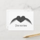This postcard features a pretty gothic black heart with the appearance of fine lace. The heart is flanked on both sides with shining metallic silver wings. There is customisable old-fashioned style black text below the winged heart to allow you to personalise this postcard.
