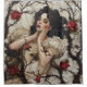 Gothic Woman with Thorns and Roses Shower Curtain. © Dark Heart Desires. This gothic shower curtain has a beautiful gothic woman lying on a satin bed surrounded by thorns and red roses.