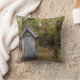 Throw pillow featuring a wooden outhouse at Pioneer Village at Harry S Truman Dam Visitor Centre in Warsaw, Missouri, United States. Before bathrooms were built in houses, they used outhouses.