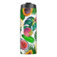 Gouache seamless pattern with tropic leaves and fr thermal tumbler