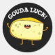 Gouda Luck Funny Cheese Pun Dark BG Classic Round Sticker
