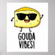 Gouda Vibes Funny Cheese Pun features a cute block of cheese encouraging us to have good vibes . Perfect Puns gift for family and friends who love cute cheese puns.