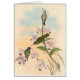 Vintage Gould illustration of petite hummingbirds amidst pink orchids